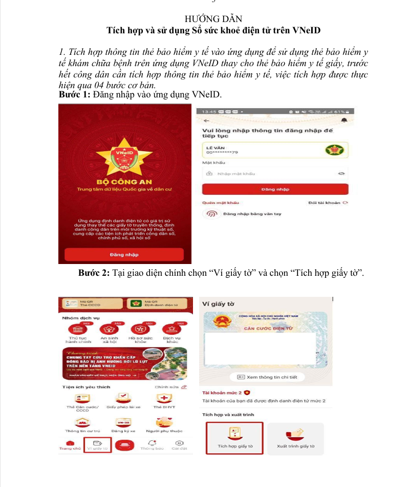 Để thuận lợi trong việc khám chữa bệnh, UBND xã Thạch Quảng hướng dẫn người dân tích hợp sổ khám chữa bệnh trên VNeID