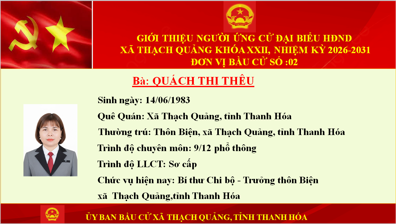 CƠ QUAN CHỦ QUẢN: UBND XÃ THẠCH QUẢNG Địa chỉ: xã Thạch Quảng, tỉnh Thanh Hóa Email:.... Trưởng Ban biên tập: .....; Chức vụ: ....... Ghi rõ nguồn: Trang thông tin điện tử xã Thạch Quảng hoặc https://thanhhoa.gov.vn khi bạn phát hành lại thông tin từ Website này.