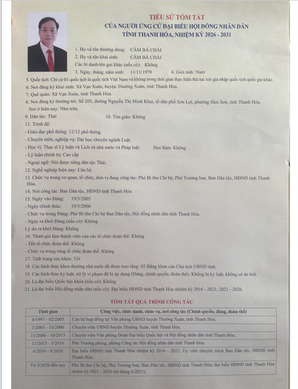 Giới thiệu Người ứng cử Đại biểu HĐND tỉnh Thanh Hóa nhiệm kỳ 2026-2031