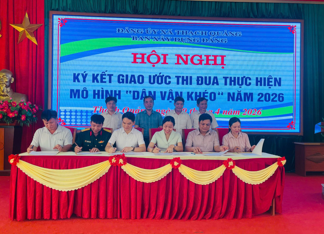 Ngày 09/4/2026, UBND xã Thạch Quảng đã tổ chức hội nghị ký kết giao ước thi đua “Dân vận khéo” năm 2026 với sự tham gia của các ban, ngành, đoàn thể và các thôn trên địa bàn