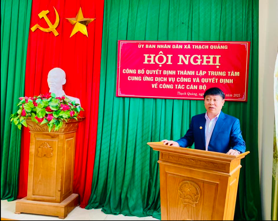 Ngày 01/12/2025 Ủy ban nhân dân xã Thạch Quảng đã long trọng tổ chức Hội nghị công bố Quyết định thành lập Trung tâm Cung ứng Dịch vụ công cấp xã và công bố các Quyết định về công tác cán